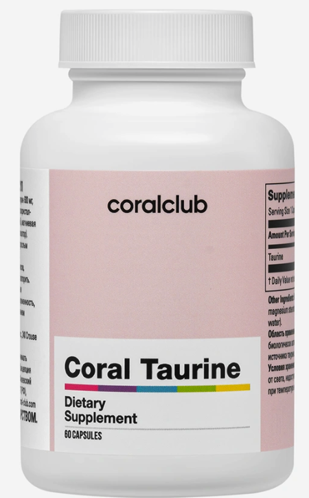 Корал Таурин Coral Club – это натуральная аминокислота. Продукт способствует повышению всех видов активности в организме, заряжает его бодростью, энергией, придает стенкам сосудов упругость. Слишком сильно таурин выводится из организма при: