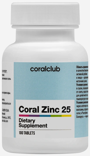 Цинк Сoral club является уникальным продуктом, благодаря большому диапазону выполняемых функций. Так он эффективен при пониженном иммунитете, болезнях кожи (сыпь и т.д.), инфекционных заболеваниях. Кроме этого, Минерал является профилактическом средством от аденомы. Он выступает отличным противовирусным продуктом.